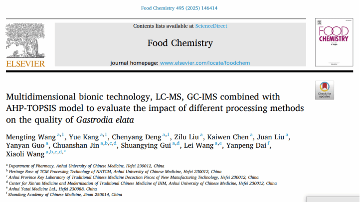 安徽中医药大学金传山教授、汪小莉副教授团队在国际期刊《Food Chemistry》(中科院双一区TOP,IF=9.8),发表天麻的重要研究成果。论文第一作者为研究生汪梦婷,共同第一作者为研究生康悦,安徽中医药大学为第一单位且唯一通讯作者单位。